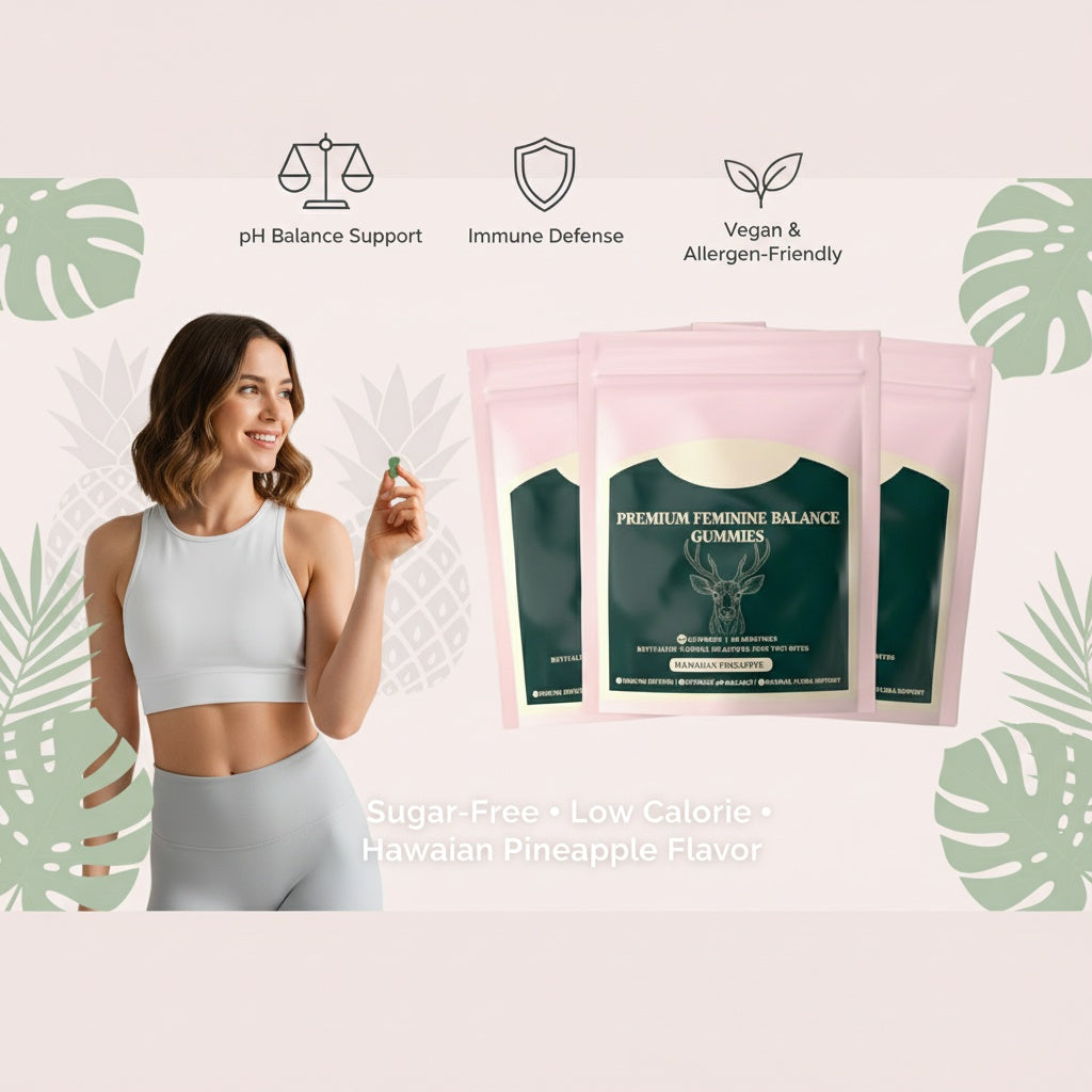 They are vegan, sugar-free gummies formulated with probiotics, vitamins, and minerals to support vaginal pH and immune health.